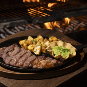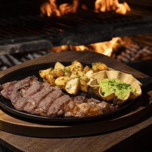 Prueba nuestra jugosa arrachera de 180 gr. en su punto mas jugoso acompañada de 2 guarniciones a tu elección.